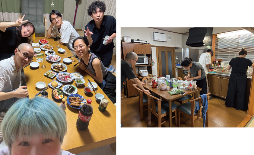 誰かが料理をしているとき、別の誰かが取り皿やグラスを並べる。誰かが洗い物を始めると、隣で誰かが皿を拭く。料理という行為で起こる当たり前の自然な連携プレーが、新鮮で心地良かった。プロデューサーとして物事を管理して進行しなければならない、常に決断を下す立場だと凝り固まっていた自分自身が、柔らかくほどけていくような感覚を味わった。われわれに決められた役割などない。それぞれがしたいように過ごしながら、適材適所を見つけていけばいい。そうやって一緒にいるなかで、わざわざ「対等」とか「自由」とか、言葉にする必要もなかった。