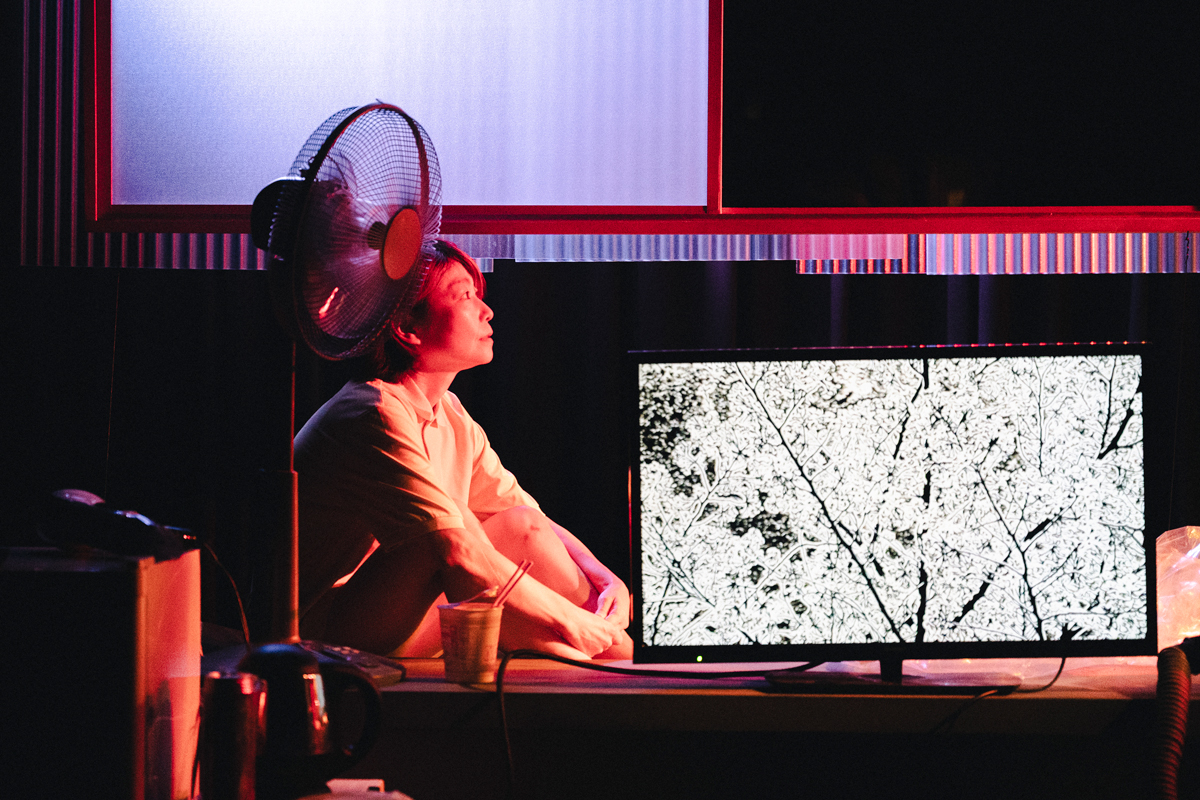 上演は極めて限定された要素によって展開される。舞台となるのは弁当屋のカウンターとミッキーの部屋。本来であればそれぞれ一階と二階にあるはずのそれらは、舞台の上では横並びに提示され、ほとんど一体化しているように見える。登場人物はミッキー(筒井)の他に、ベトナム人女性の弁当屋従業員(髙山玲子)とその弁当屋の店長の女性(住吉山実里)、そしてミッキーと同じく就職氷河期世代でありながら「勝ち組」となった、ミッキーが勤める運送会社の御曹司(岡村ゆきを)の三人。従業員に言葉は与えられていない。他の三人が発する言葉の多くは独り言めいて鬱屈している。ときにミッキーとの間で交わされる会話もまた、その鬱屈を深めていくのみである。